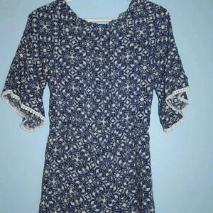 Amy Byer Blue and White Romper Large Flutter Sleeve Elastic Waistline