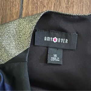 Amy Byer Girls 14 Formal Dress Shimmery Gold Blue Black Wedding Holiday Event