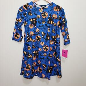 Amy Byer NWT Halloween dress with haunted house, bat, spiderweb, witches, and jack-o-laterns
