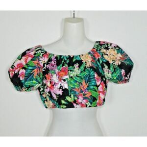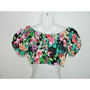 Amy Byer Top Size Large Black Floral Cropped Vintage Y2K‎