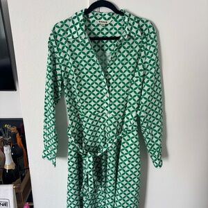 Amy Cotton Short Shirt Dress from Boden (Green, Diamond Terrace Print)