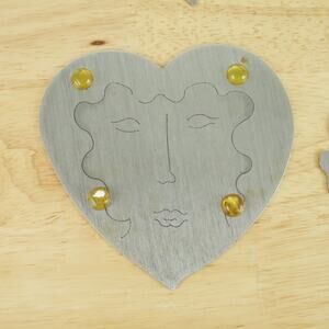 Amy Hess Coaster Set Card Suits New York Metal Art Cut Steel Vintage 90s Signed