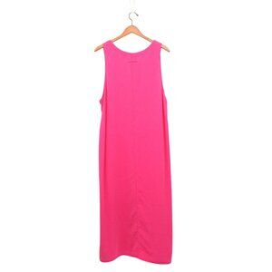 Amy K Su AKS Tencel Pinafore Jumper Maxi Buttoned Pockets Bright Pink Dress L