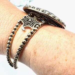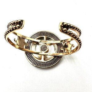 Amy Kahn Russell Womens Bracelet Bronze Glass Medallion Cuff 7 Inch Adjustable