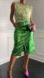 Crafted from a shimmery faux leather metallic fabric, the Amy Lynn high-waisted skirt features a stylish front cut slit.