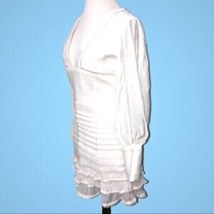 Amy Lynn Plunge Neck Long Sleeve White Mini Dress Medium NWT