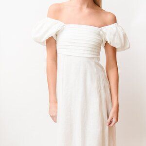 Featuring balloon sleeves with an off-shoulder option, a pintuck bodice, back zip closure, and shirring details, this full-length maxi dress is both sophisticated and timeless. Fully lined for added comfort and coverage, it’s the perfect piece for all occasions.