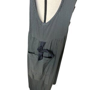 Amy Rigg Dress Gray Black Stripe Sleeveless Button Front Bow Pockets Size Small