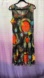 This sleeveless midi dress by Taylor showcases a scoop neckline and a captivating geometric print in orange, yellow, and blue on a black and gray background. Its A-line silhouette provides a flattering fit, making it an ideal choice for a casual night out.