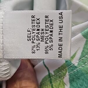 This is such a great quality top for your golf, pickel ball, or tennis wardrobe. beautiful green and blue leaf pattern. Excellent condition and quality. sleeves are net and jersey fabric. Great Zipper pocket. Size medium, pit to pit flat measurement is 19". Sleeves are 19". The top to bottom length is 23.5 ".