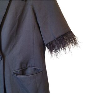 AmyEnjoyLife Women's Black Feather Sleeve Single Breasted Longline Blazer Size M