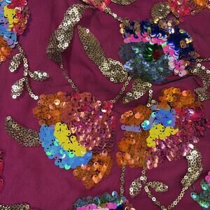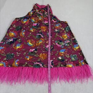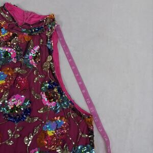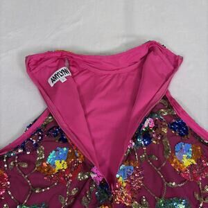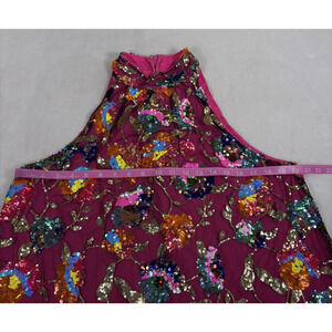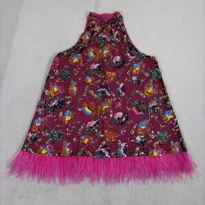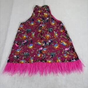 Amylynn Floral Sequined Mini Dress Size Large Pink w/Feather Trim Bnft Charity