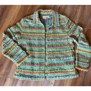 Anü by Natural colorful soft jacket or blazer. 100% cotton, made in India, lots of colorful detail all over. Size small, arm measures 23” from shoulder, chest is 20” across, length measures 24” from shoulder.