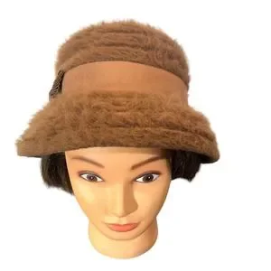 An Everett Needlepoint Original Vintage 60s Brown Wool Mod Cloche Bucket Hat