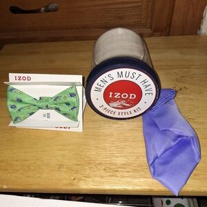 An Izod 3 piece men must have style set with a bowtie, shoestrings, handkerchief