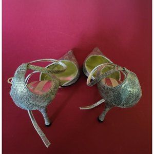 An Marino Shiny Star Metallic Python MLT Gold Size 8 High Heel Shoes