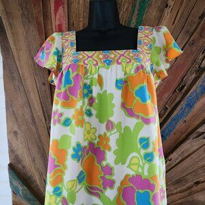 An Original Milly of New York floral print 100% silk free busted mini dress Sz 2