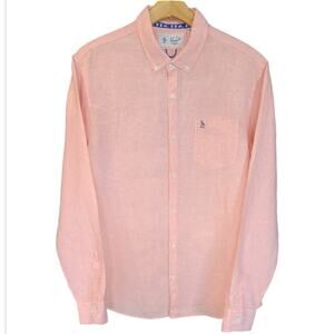 An Original Penguin Linen Button Down Shirt Men XL Salmon Classic Coastal Preppy