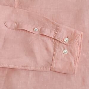 Elevate your summer wardrobe with this 100% linen button-down shirt from Original Penguin. Lightweight and breathable, this shirt is ideal for warm-weather occasions-from beach vacations to casual Fridays. The salmon hue offers a stylish, modern twist on classic pastels- perfect for coastal, preppy, or resort-inspired looks.