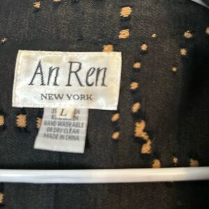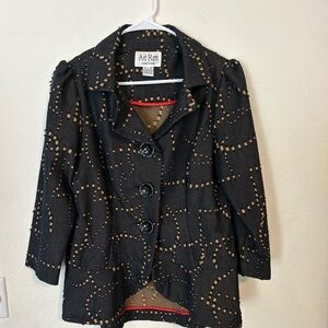 An Ren New York Black Tan Jacket Blazer Wearable Art Button Peplum Vintage Large