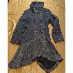 An Ren XS Wool-Blend Tailcoat Jacket Bustle Hem Gray/Red Steampunk