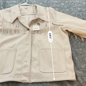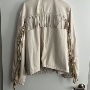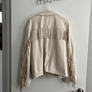 Ana faux leather fringe ivory jacket