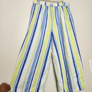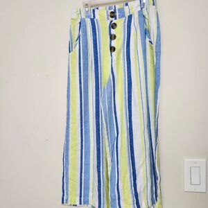 Ana A New Approach Linen Pants Size XS Green Blue Striped With Pockets