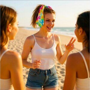 🌙 Style Tags: tie-dye scrunchie ✦ ribbon scarf hair tie ✦ festival hair accessory ✦ colorful ponytail holder ✦ boho chic ✦ ana accessories ✦ multicolor scrunchie ✦ trendy hair tie