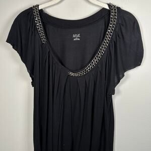 A.n.a Black Chain Link Scoop Neck Short Sleeve Blouse Women's Medium