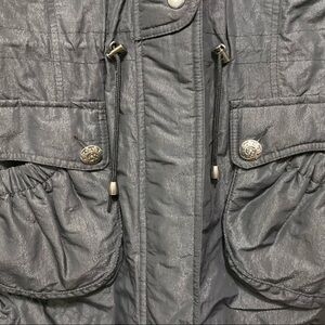 Ana Black Metallic Weave Toggle Waist Pockets Nylon Jacket Coat
