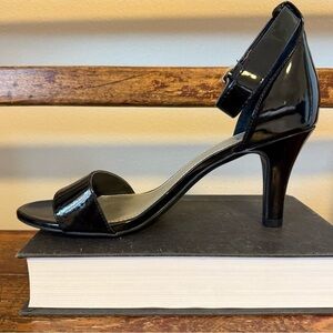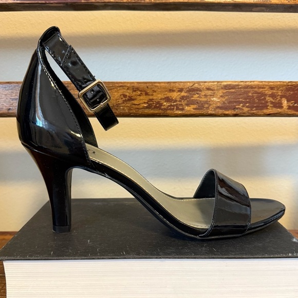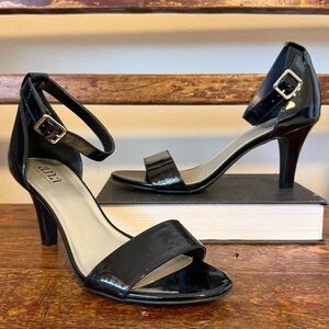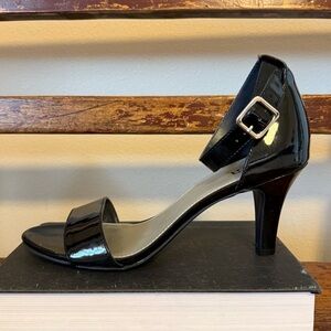 A.n.a. Black Patent Leather Open Toe Heels Sandals a New Approach Shoes