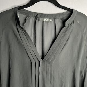Ana Black Sheer Pleated Seam Tunic Size Medium