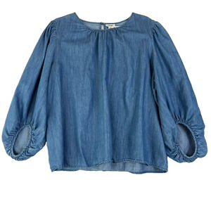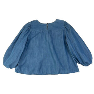 Ana Blouse Peasant Top Womens XXL Blue Denim Balloon Sleeve