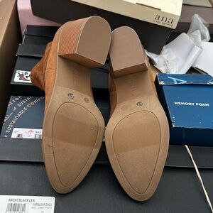 Elevate your shoe game with these stylish Ana Electra ankle boots in whiskey brown. Featuring a closed toe and pull-on closure, these boots are perfect for any occasion, from casual outings to workwear to cocktail parties. The boots have a 3-inch block heel and a polyurethane outsole for durability.