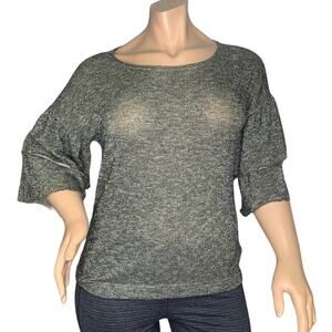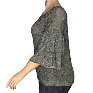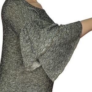 Ana Fine Knit Shimmery Gold Bell Ruffles Sleeves Top Crewneck Size XL