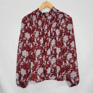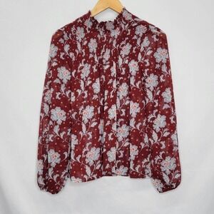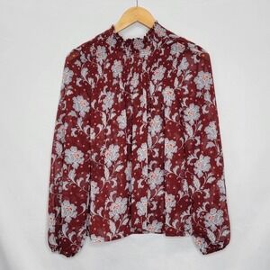 A.N.A A New Approach Floral Burgundy and Gray Long Sleeve, high neck, Casual Dress Shirt Blouse Women