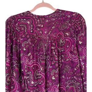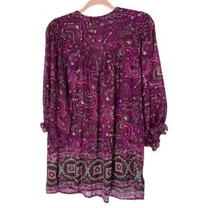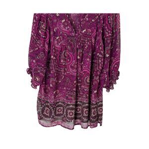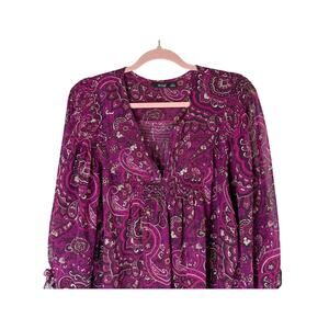 A.n.a Fuscia Pink Paisley V-neck Semi-Sheer Loose Tunic Blouse Top Size XL
