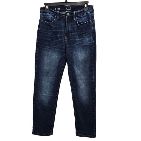 A.n.a High Rise Straight Women's Dark Wash Sandblasted Stretch Denim Jeans Sz 8