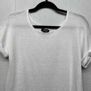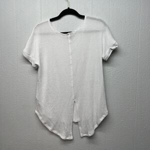 A.n.a. women's knit top. Scoop neck. Short folded sleeves. Split back. Stretch. In good used condition. No stains, tears or holes.