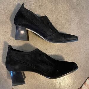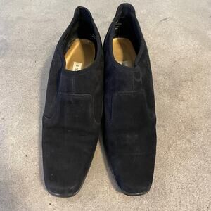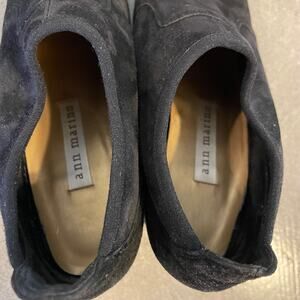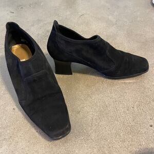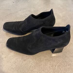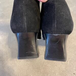Ana Marino black Suede leather bootie shoe squared toe block heel womens size 7, preworn great conditions. Heel height 2". Slip on ankle boot casual shoes. whims goth