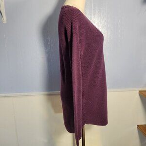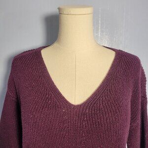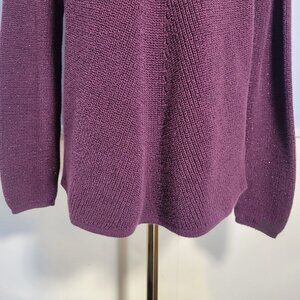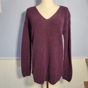 Ana Medium Dark Purple Metallic V Neck Tight Knit Longsleeve Pullover Sweater
