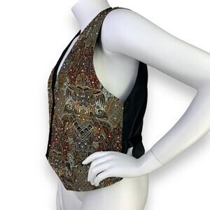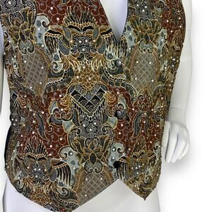 Ana Mori Beaded Vest All Size One Free Beads Pearls Vintage Snap Closure OS Tan