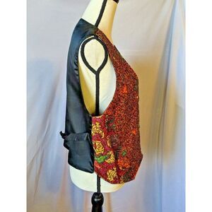 Ana Mori Orange Floral Leaves Fall Thanksgiving Beaded Vest Women's One Size