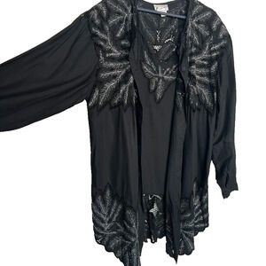 Ana Mori Tunic Top Womens XL 2 piece Button Up Cutout Lace Flower Padded