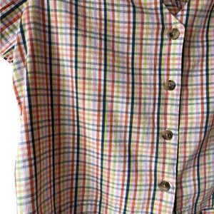 Chic plaid design with button-down front. Short sleeves for a casual look. Perfect for versatile styling.