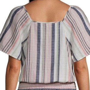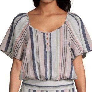 A.n.a Oversized Crop Shirts Women Size XSmall Striped Print Flutter Sleeve Top