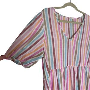 Ana Puff Sleeve Tiered Babydoll Dress Summer Spring Woven Stripe XL bv