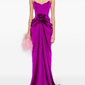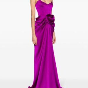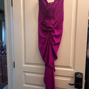 Ana Radu Floral-Appliqué Satin Gown Fuchsia Pink Size Small GORGEOUS!