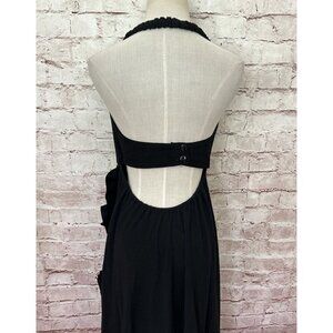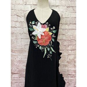 Ana Rosa Womens Halter Dress Handpainted Floral Art to Wear Black Cotton Size S