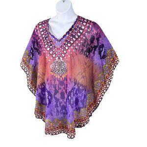 Ana & Rose OSFM Boho Purple Chiffon Tie Dye Kaftan Top Fairycore Rainbow Hippie